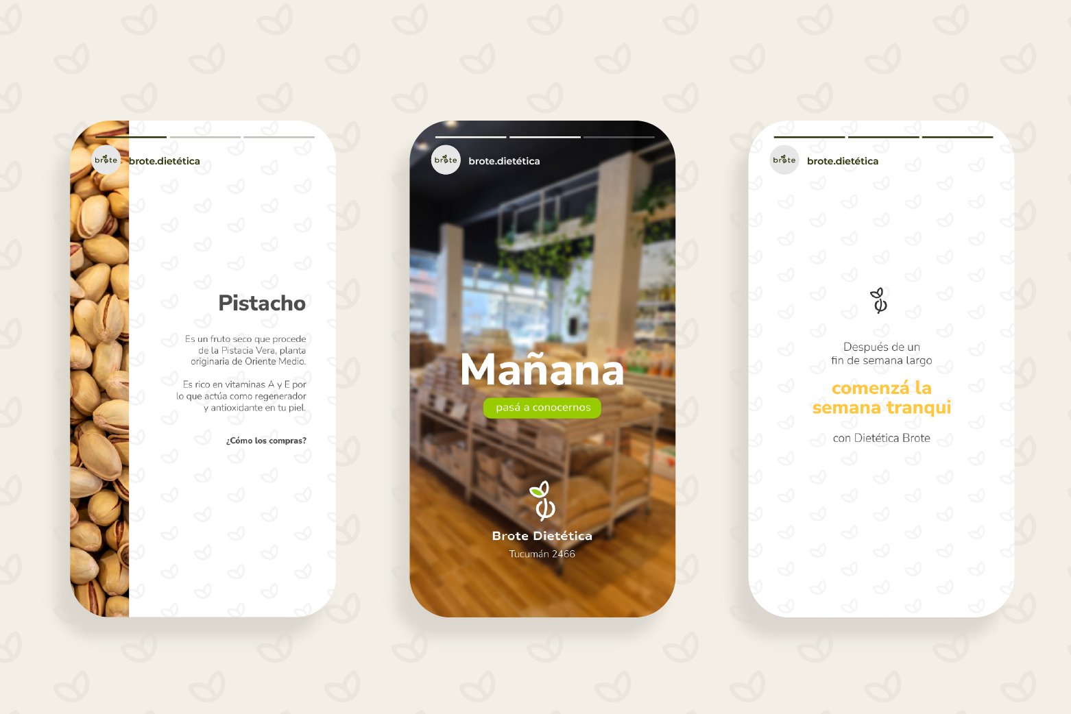 Llamados a la acción constantes: “Visítanos en Tucumán 2466”, “Link en bio para tu compra online”.